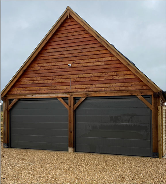Constructed linking insulated painted steel panels our sectional garage door glides up vertically and across the roof space of your garage. The tracks can be completely hidden behind your garage door opening therefore maximising your drive through width and height.